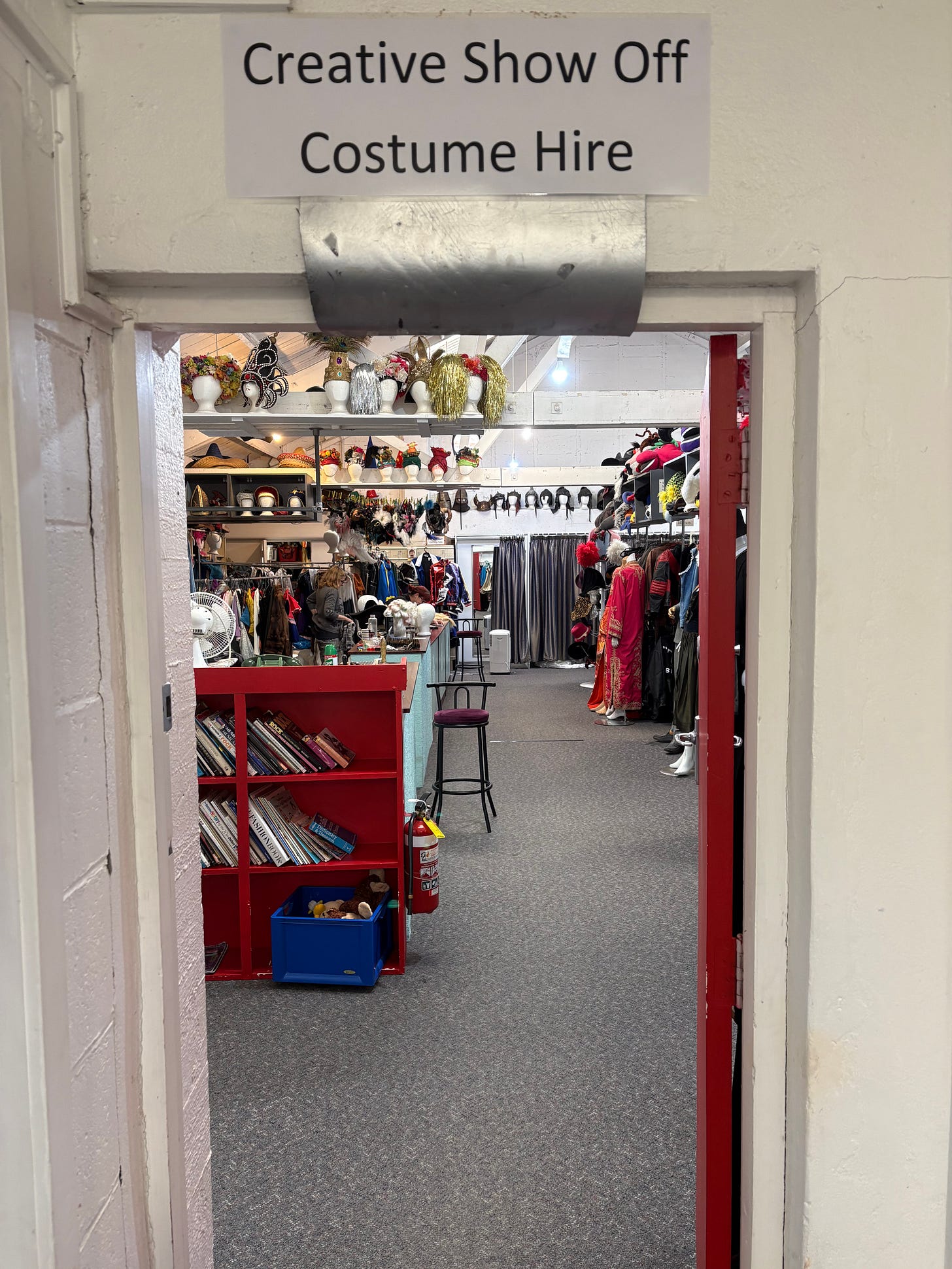 When you call in, the shop is joyful as always. A drag artist bursts from a dressing room in a crinoline. A long blonde wig is laid along the counter, waiting to be brushed. Obama, King Charles and Trump gaze from a high shelf of rubber masks. You run your hand along the racks — sequinned sleeves, pirate shirts, striped blazers, the quilted arms of astronaut suits.