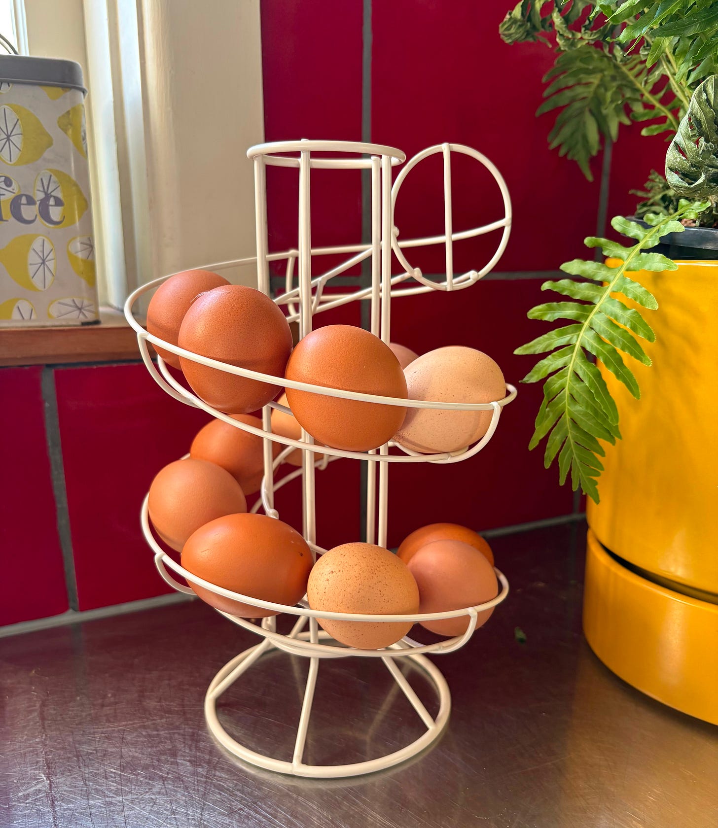 “BREAKING NEWS,” you text Usha. “My Marks & Spencer egg rack has cleared Customs.”