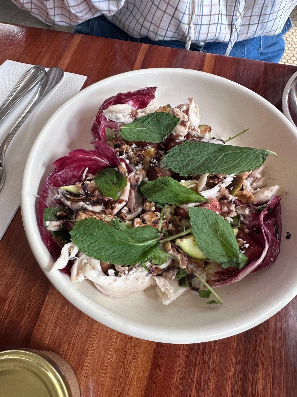 This week I reunited with Mike, my London flatmate of nearly THIRTY YEARS AGO, and had this absolutely sensational fig salad at Floriditas. The wonderful waiter suggested adding chicken, because “everybody needs protein”.
