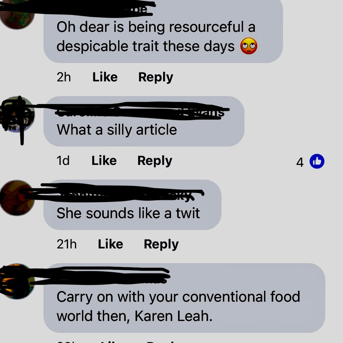 Re your columns: Do not. Ever. Read. The. Comments dear Leah. They are always written by would be writers - people with nothing else to do than be nasty. As we used to say in primary school, "come here and say that!"